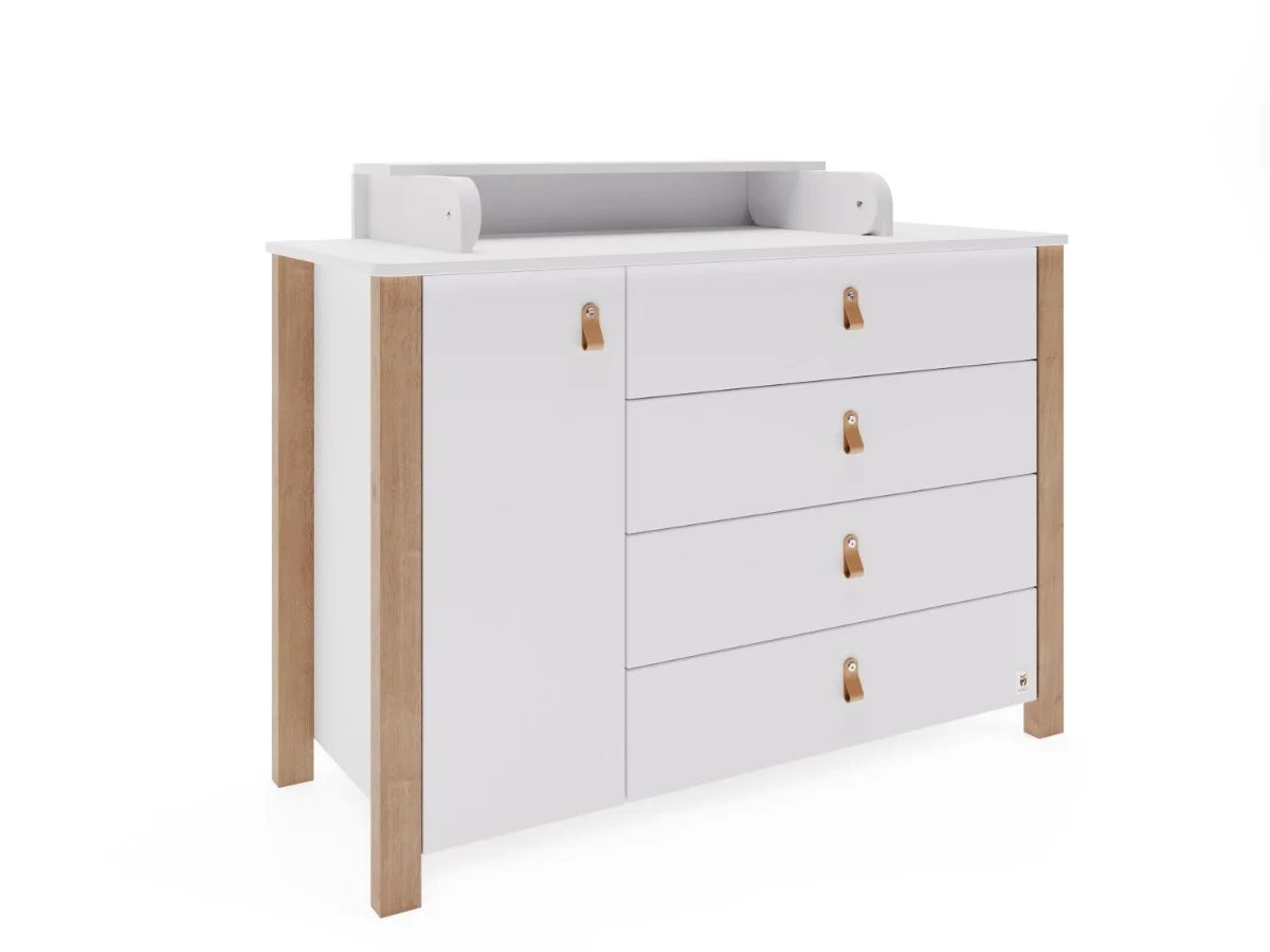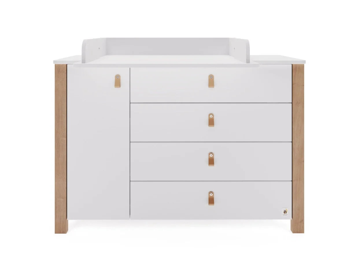 Het aankleedkussen kan aan de linker- of rechterkant van het dressoir worden bevestigd. Na verloop van tijd