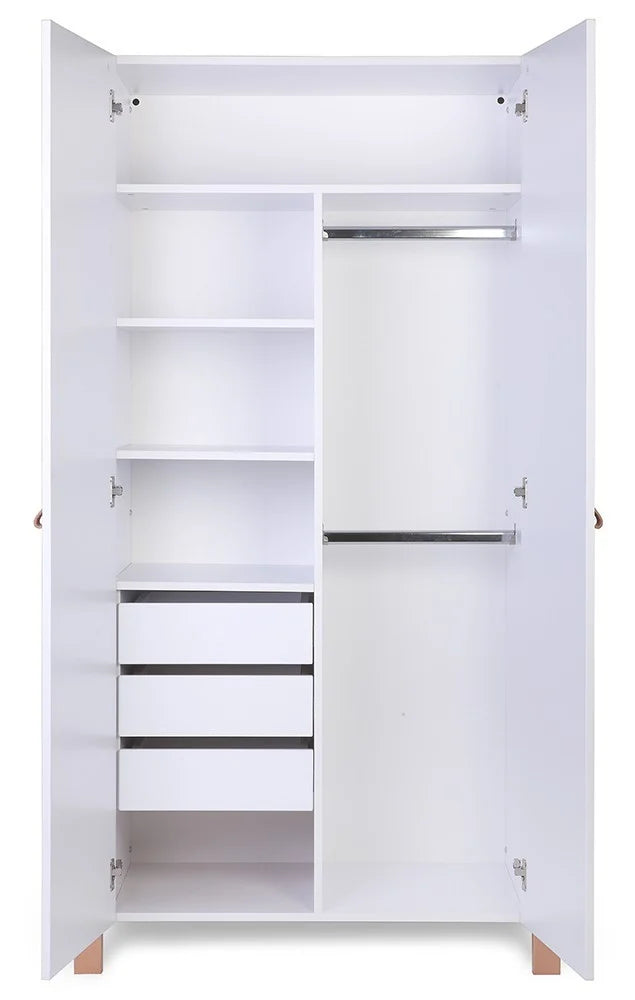 Een kledingkast met twee deuren en 3 lades biedt voldoende ruimte om alles wat je nodig hebt op te bergen.