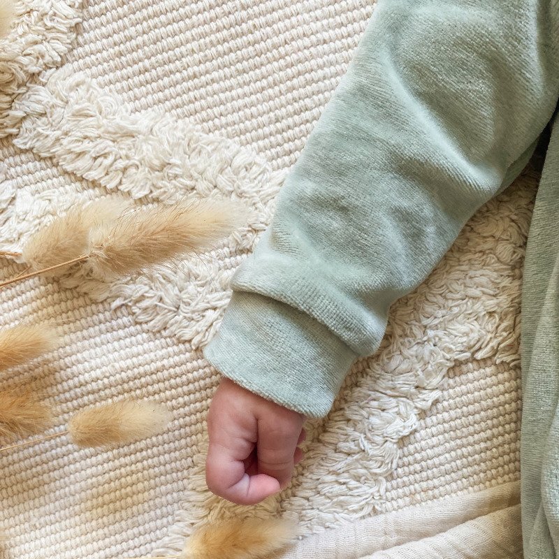Dit zachte groene boxpakje is met zorg handgemaakt in ons eigen atelier en vervaardigd van GOTS-gecertificeerde stof, milieuvriendelijk en maatschappelijk verantwoord. Comfortabel en perfect voor dagelijks gebruik van je kleintje.