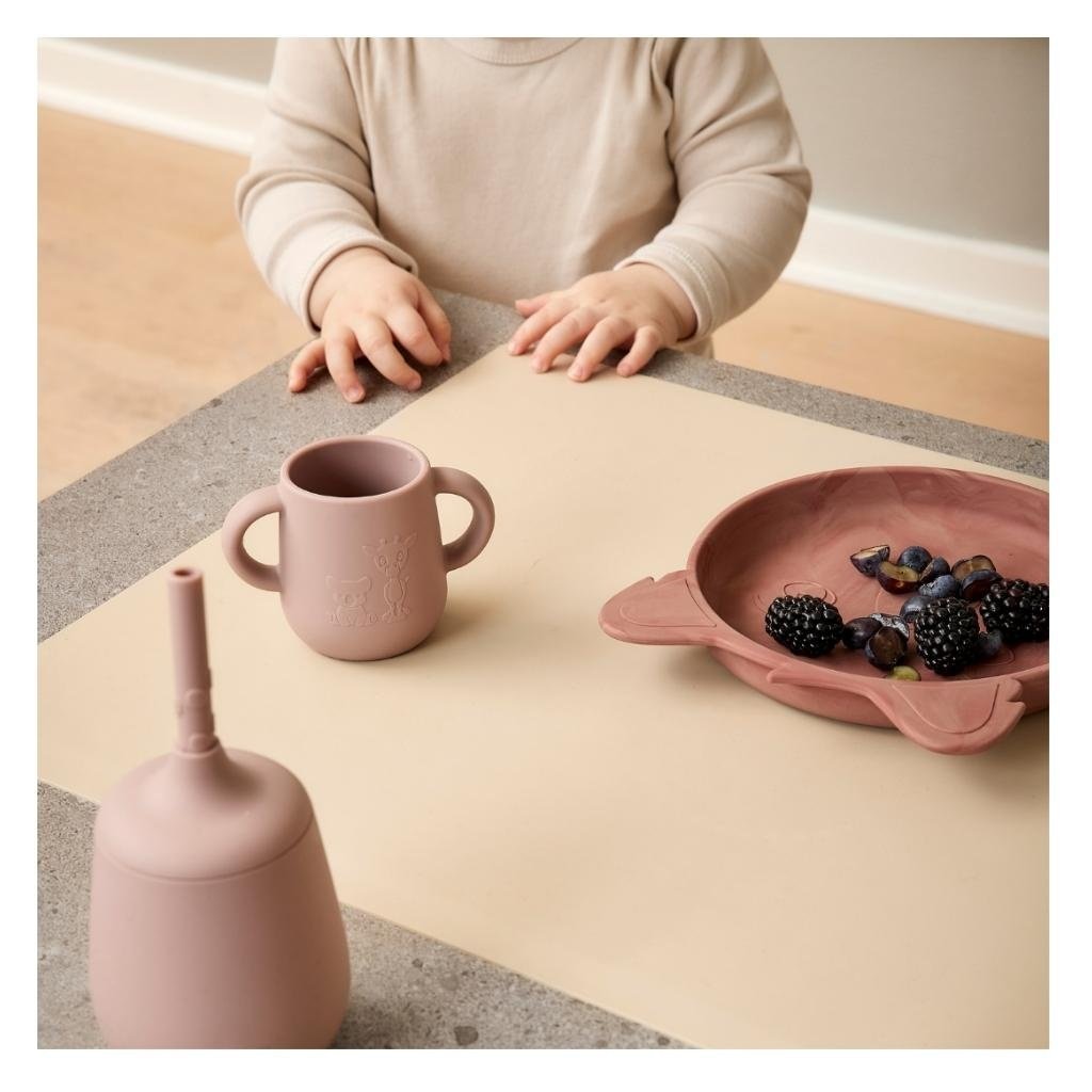 Onze Abiola beker is ontworpen met twee handvatten waardoor kinderen gemakkelijk zelf kunnen drinken. De beker is gemaakt van zachte siliconen, die niet breken als hij op de grond valt. De siliconen zijn geschikt voor levensmiddelen, vaatwasser- en magnetronbestendig.