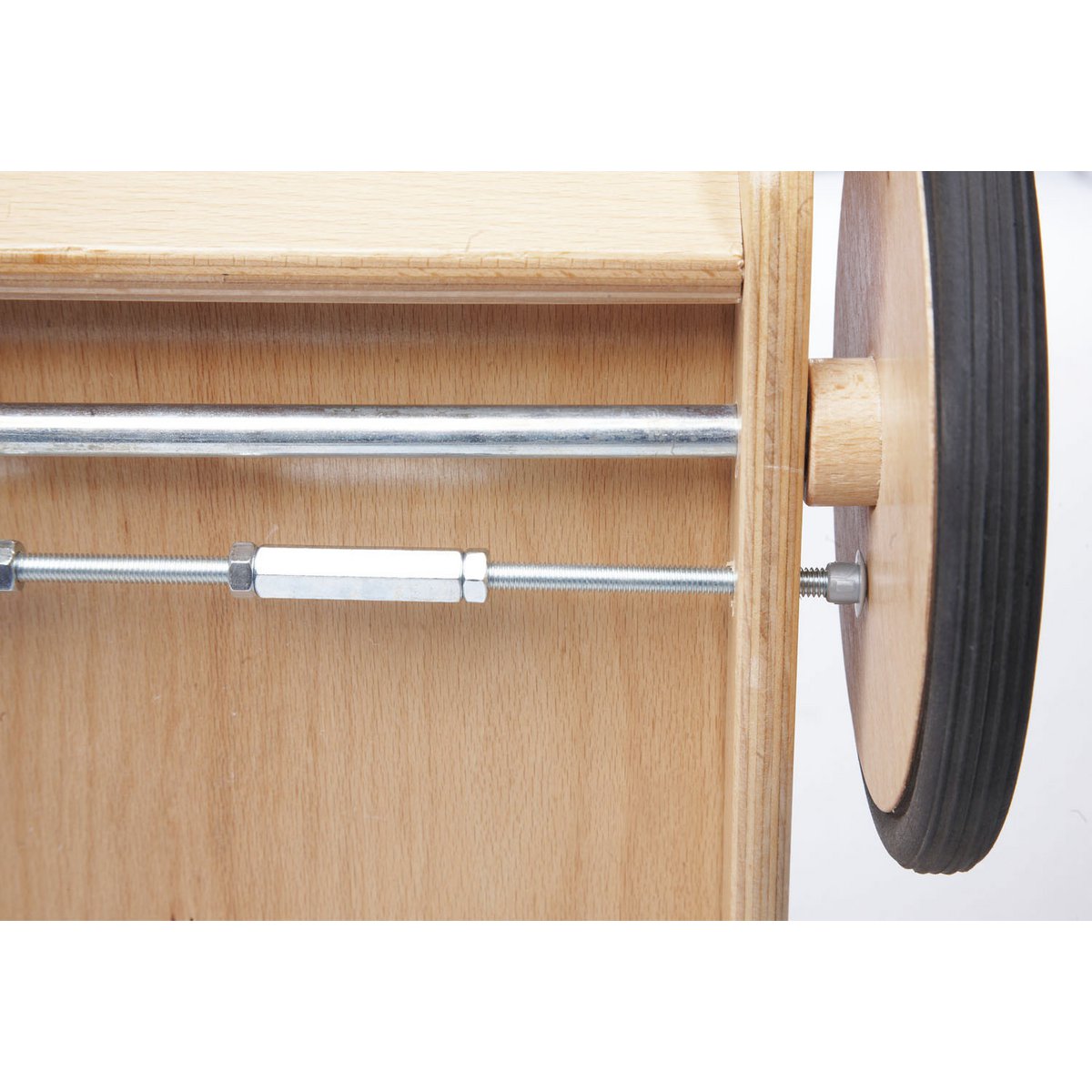 Poppenwagen 'Sarah', met continu verstelbare rem, rubberen houten wielen en stalen assen.