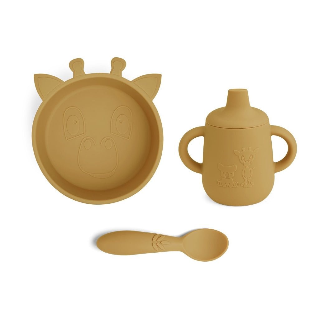 Al onze beste serviesproducten in één set. Elias 3-pack set bevat een diep bord, beker met drinkdeksel en een lepel. Het servies is gemaakt van LFGB gecertificeerde siliconen zonder schadelijke chemicaliën. De siliconen zijn zacht en praktisch, want ze zijn vaatwasmachinebestendig en breken niet als ze op de grond vallen.