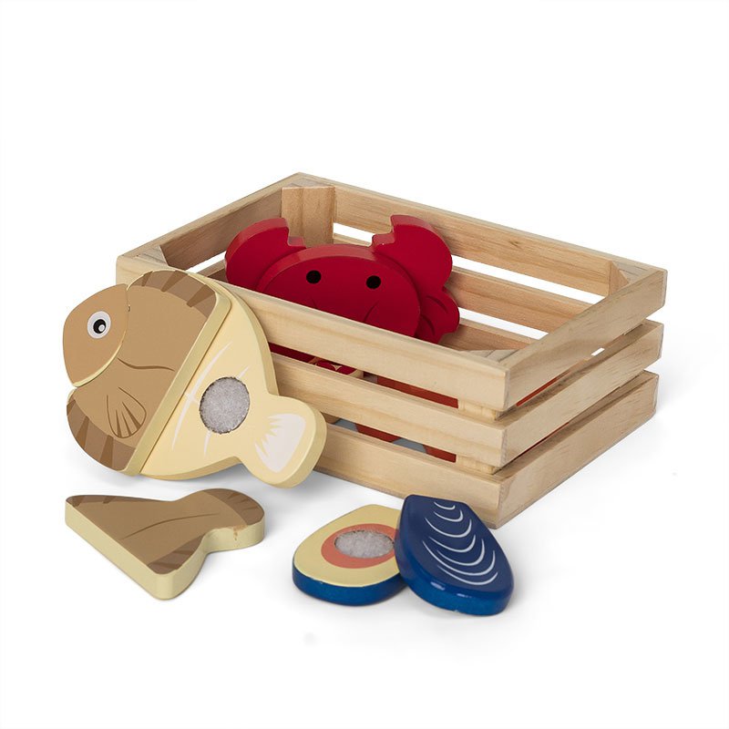 Leer spelenderwijs snijden met dit leuke kistje met houten snij vis. Inhoud: garnaal, mossel, krab, kreeft, schol Afmetingen kistje: 16x11x6cm... Lees meer