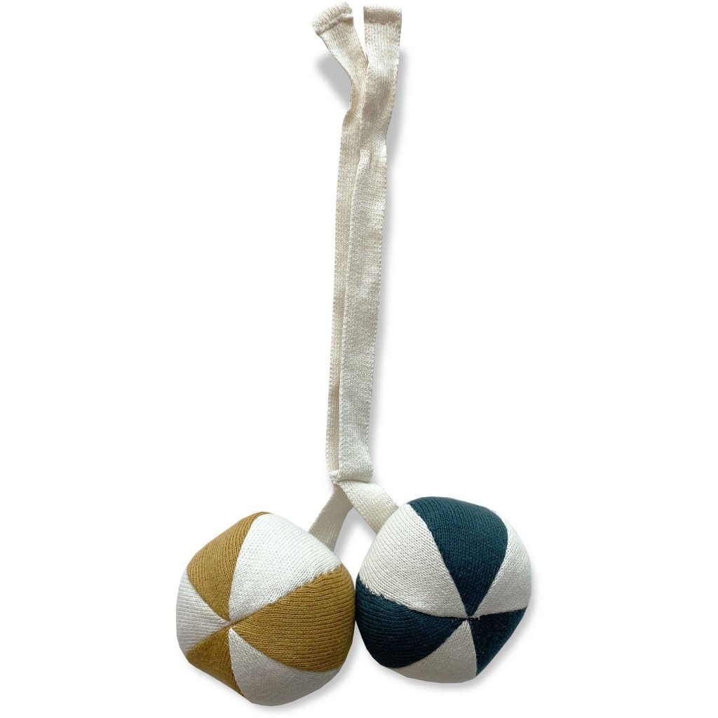 Lue gebreid activiteitenspeeltje met twee ballen met belletje. Gebruik hem om op te hangen of in je activiteitencentrum.Kwaliteit: 100% biologisch... Lees meer