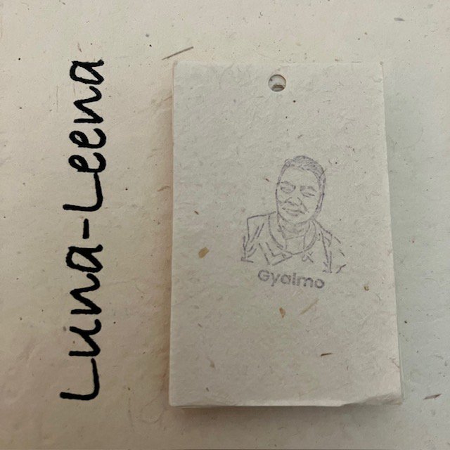 Elke milieuvriendelijke papieren tag op het product vertelt het Luna-Leena-verhaal van Nepal.