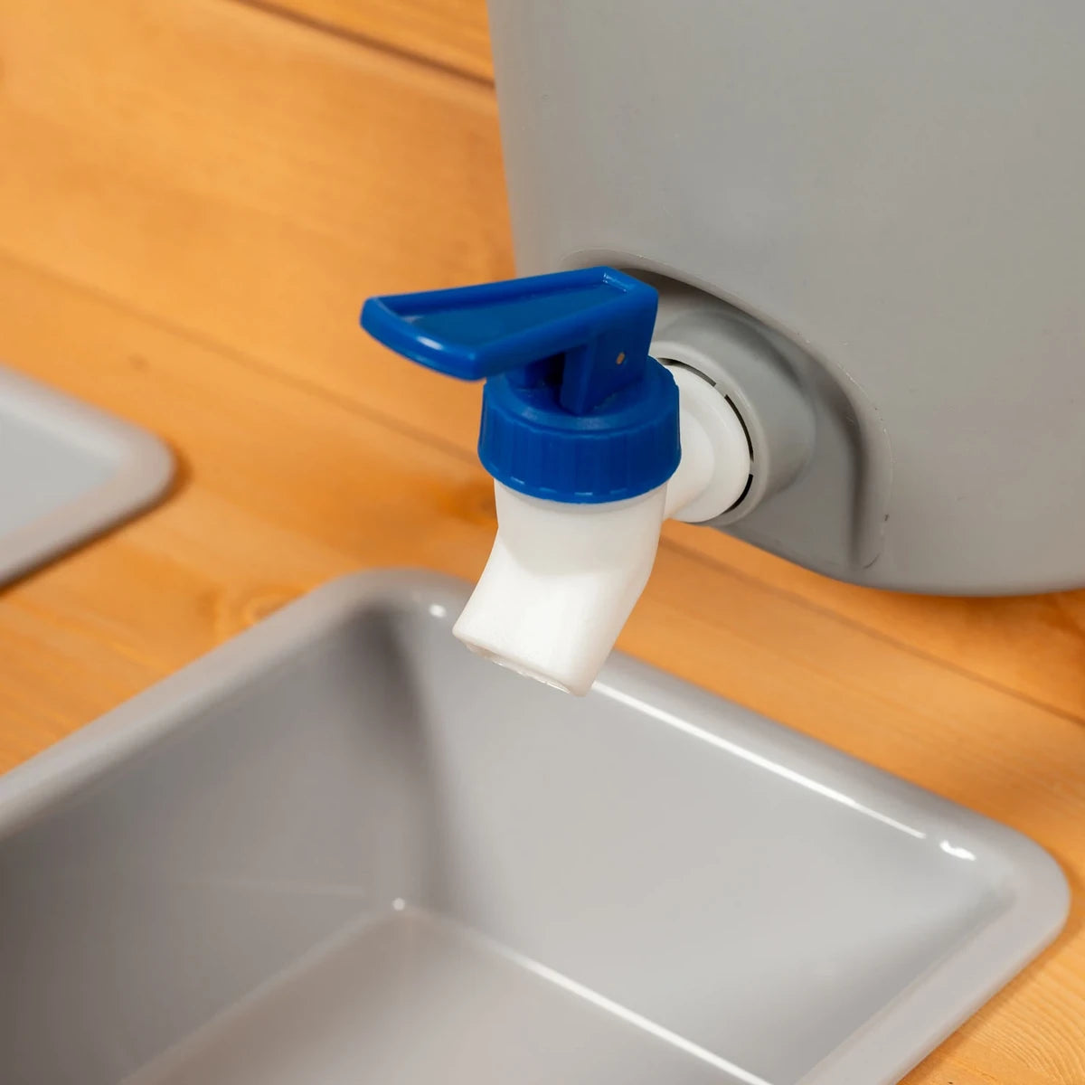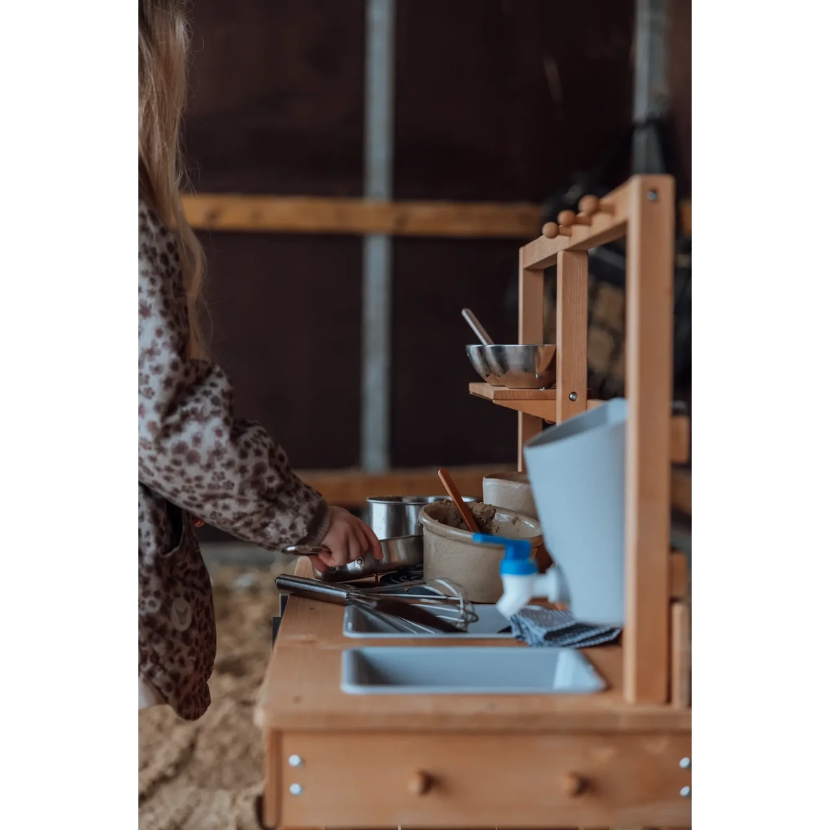 Deze buiten speelkeuken is ontworpen voor buitenplezier en biedt een duurzame en veilige plek voor kinderen om te ontdekken, creëren en socialiseren. Of ze nu een zandmaaltijd koken, denkbeeldige lekkernijen serveren of gewoon plezier hebben met water en modder, deze speelkeuken biedt urenlang vermaak en zintuiglijke exploratie.
