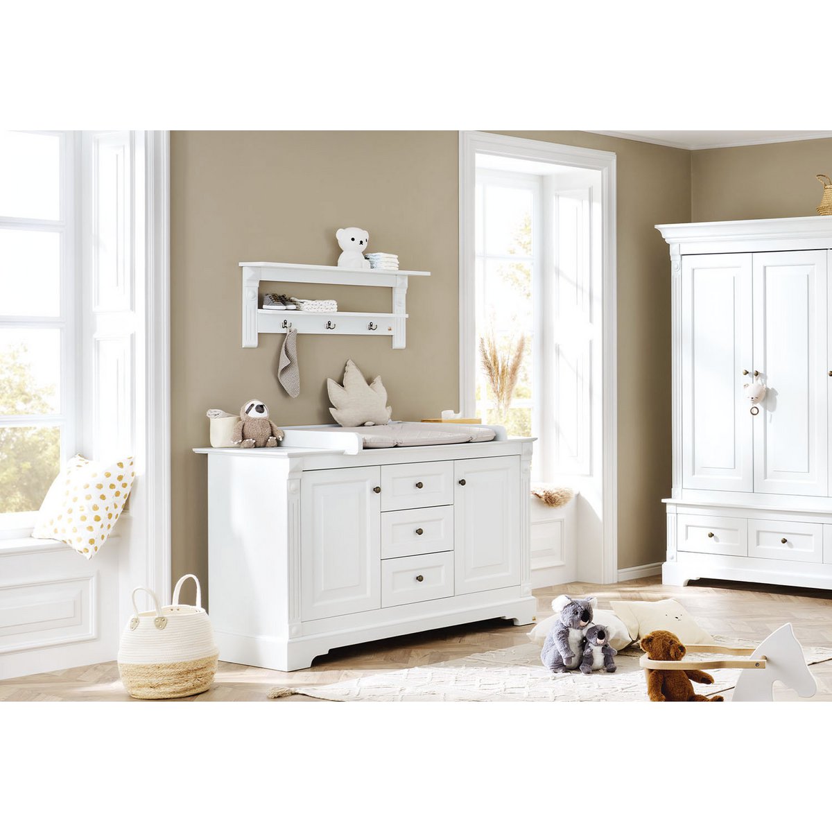 • Classy mat: MDF, wit gelakt• B 100 cm, D 18 cm, H 40 cm• Met uitgebreide sierstrips• 3 kapstokhakenBreedte:... Lees meer