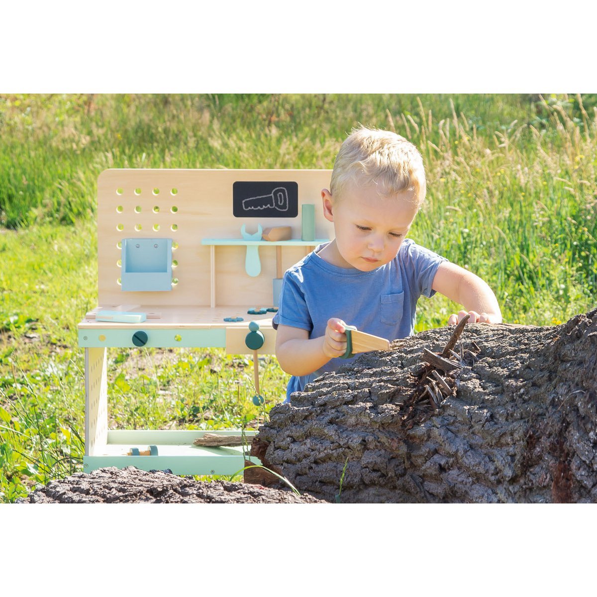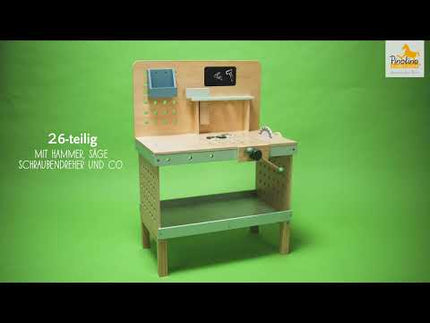 • 26 delen: 1 werkbank, 1 variabel insteekbare opbergbox, 6-delig gereedschap, 18-delige accessoires