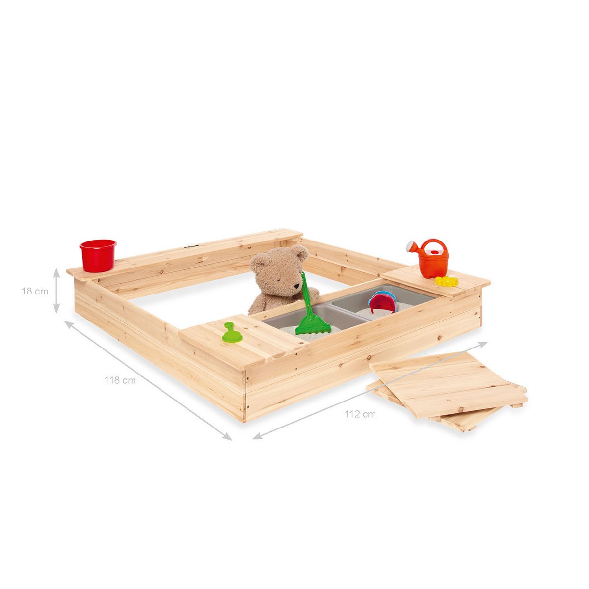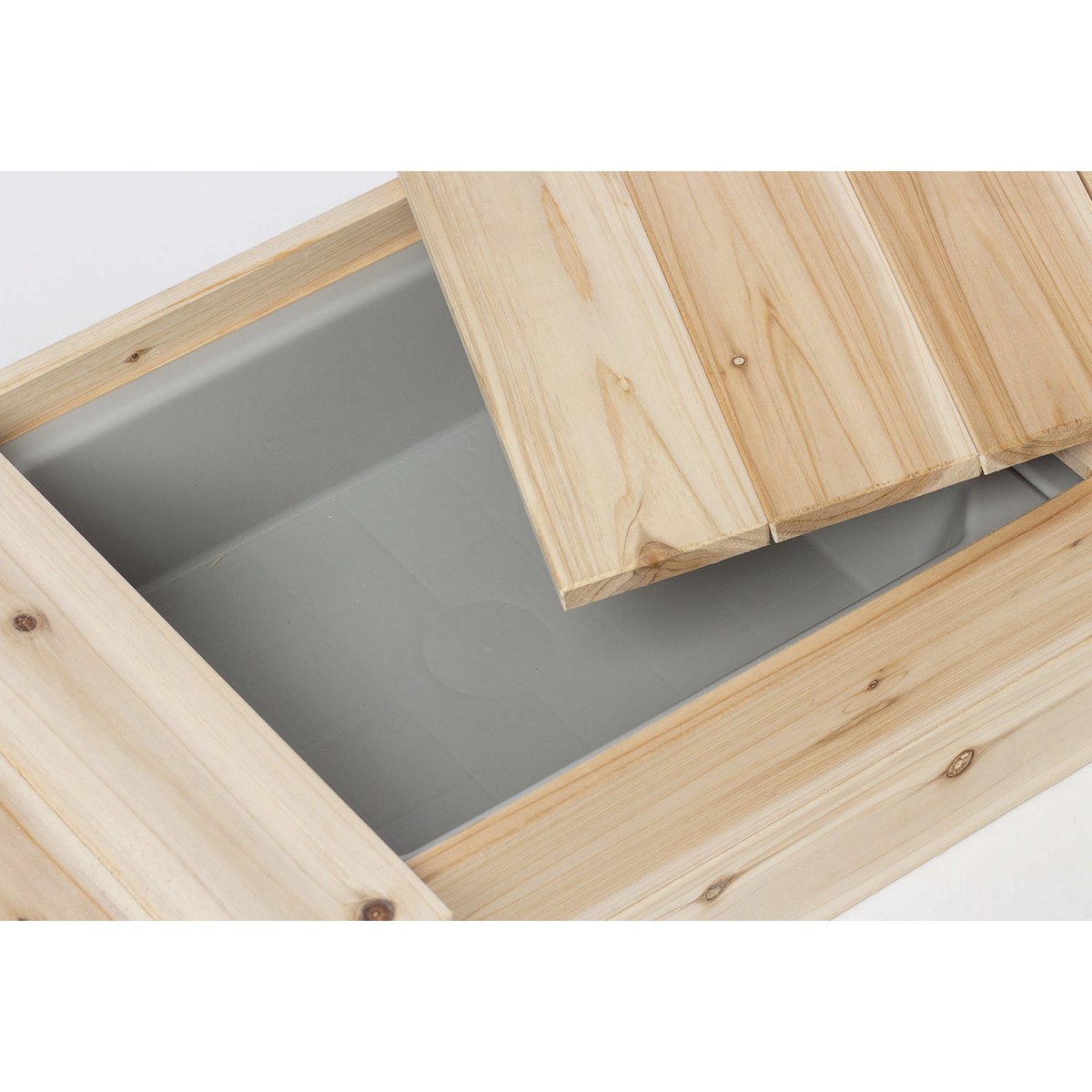 • Volledig massief hout: spar, onbehandeld• L 118 cm, B 112 cm, H 18 cm• Zitting W 16 resp. 32... Lees meer